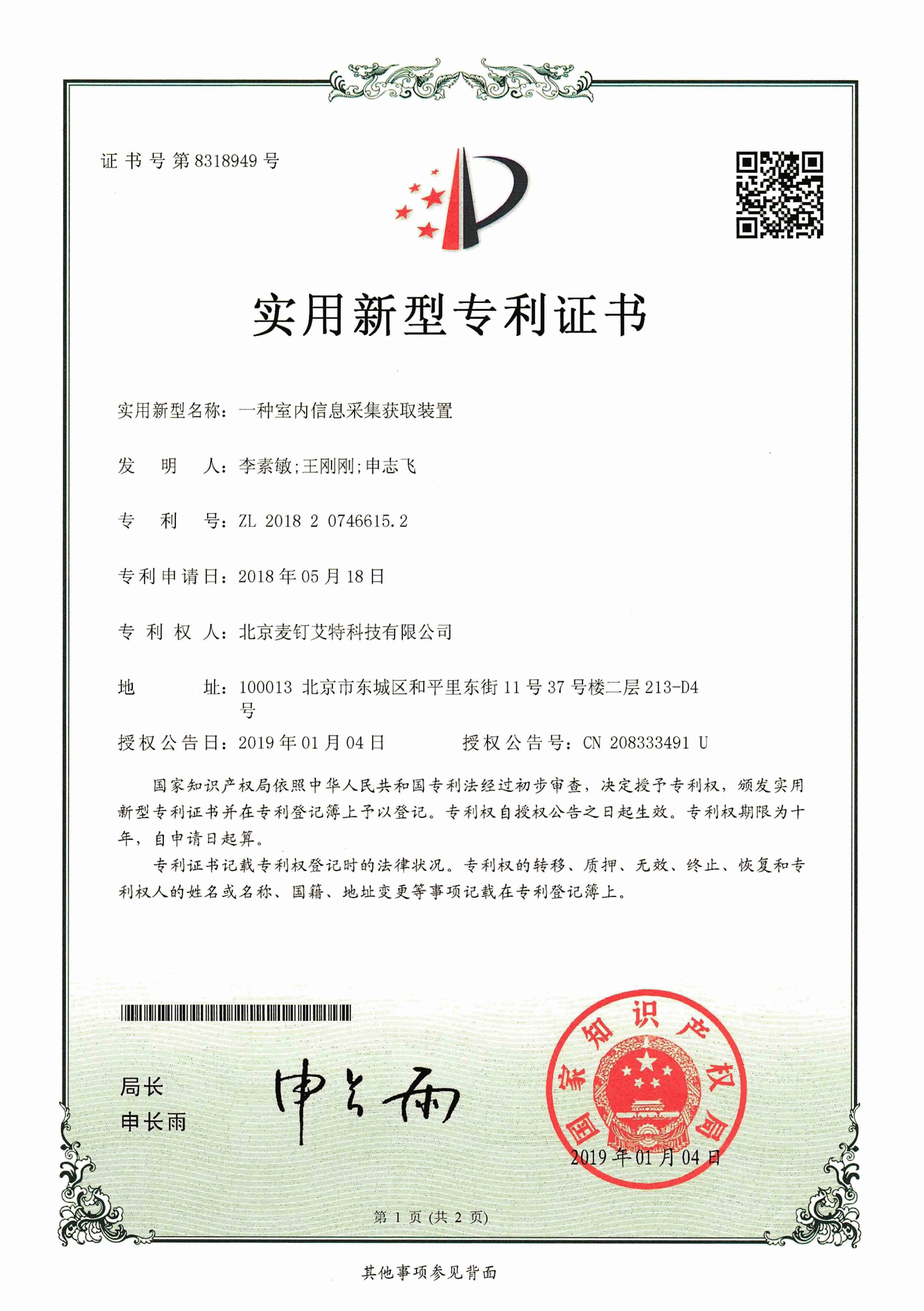 实用新型一种室内信息采集装置获得授权