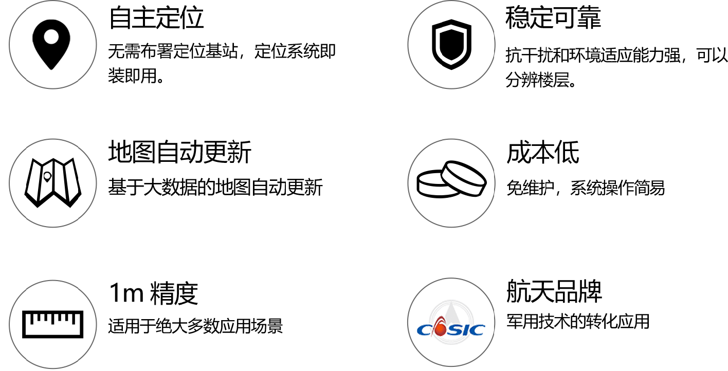 通过“磁场定位+惯导+地图+蓝牙”的多源融合定位机制,实现室内环境下人员、车辆的位置、速度测量,定位精度1m,定位稳定连续可靠。